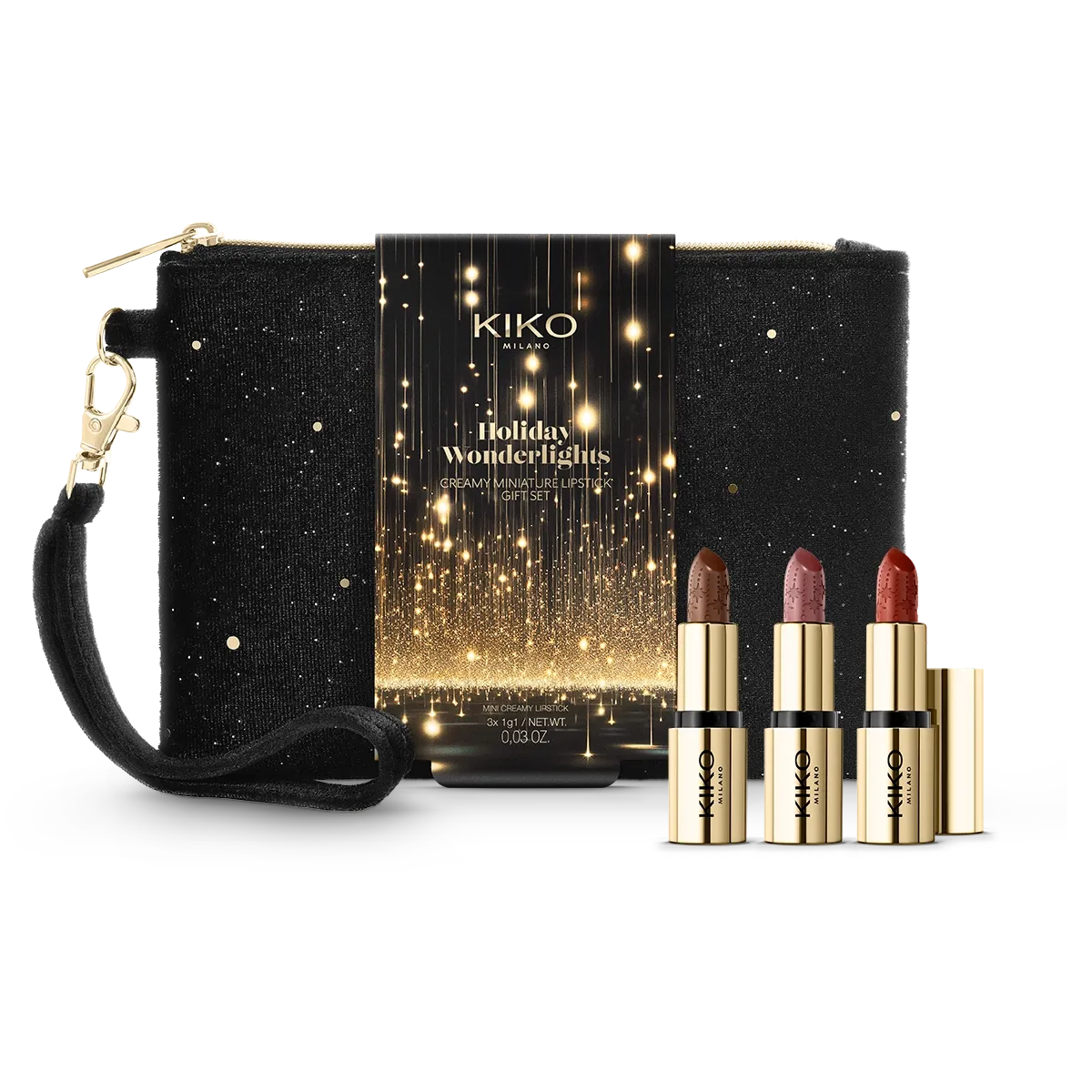 Conjunto de oferta para os lábios composto por 3 mini batons com um acabamento cremoso, dentro de uma pochete requintada.O conjunto contém:– N.º 3 Mini Creamy Lipstick em três tonalidades atuais (01,02,03)Uma textura suave, leve e confortável que desliza perfeitamente sobre os lábios, fundindo-se instantaneamente.Um conjunto de mini-joias, embelezadas com um design apelativo, para revestir os lábios de cores ricas e radiantes desde a primeira passagem.– N.º 1 Mini Pochete para maquilhagem e acessóriosPrática e elegante, é fabricada em tecido com efeito de veludo preto e decorada com uma cascata de pormenores dourados brilhantes. Formato retangular, fecho de correr e alça para o pulso.Ideal para:sublimar os lábios com um véu cremoso de brilho irresistível e exibir um look de lábios impecável em todas as ocasiões, graças ao delicioso tamanho de bolso dos batons. Um presente que encanta e conquista todos os corações.